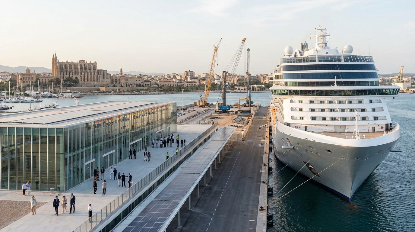 Les gros paquebots accostent aux terminaux de la Dársena de Ponent, une longue digue équipée de plusieurs bâtiments. En haute saison, il peut y avoir 3 à 5 navires en même temps : c’est là que se jouent vos premières minutes.